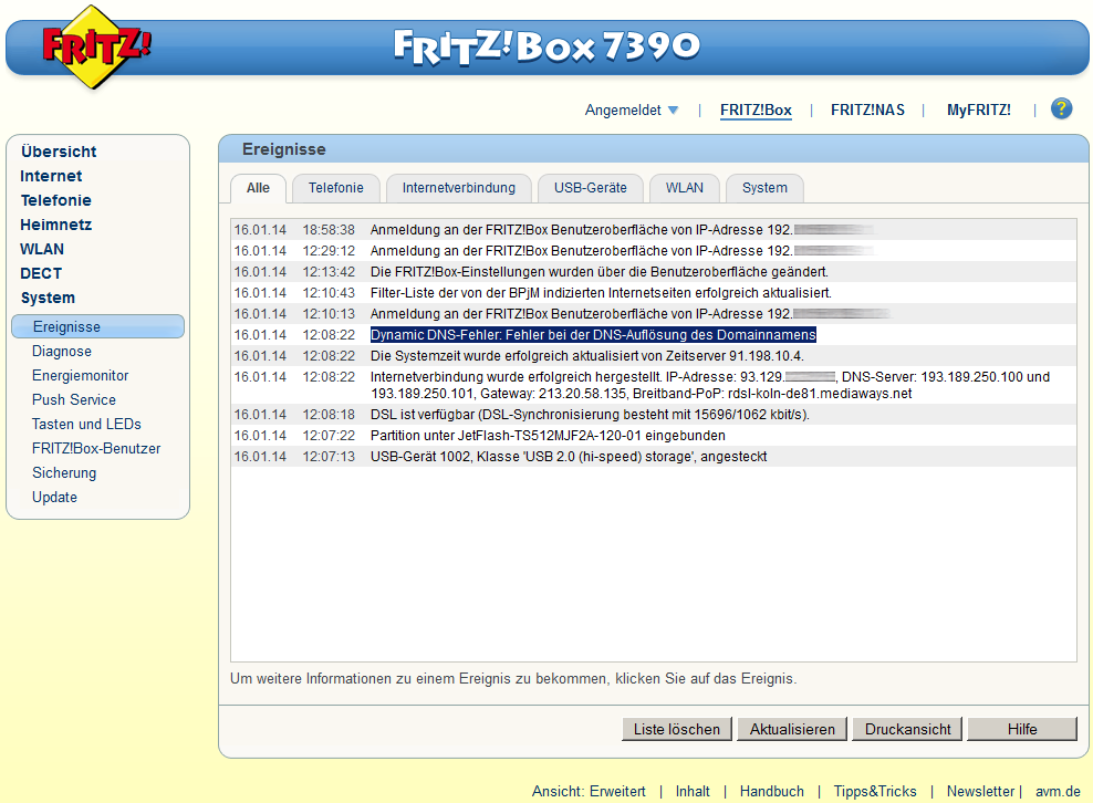 Fehlermeldung im Router-Log(FritzBox): "Dynamic DNS-Fehler: Fehler bei der DNS-Auflösung des Domainnamens":