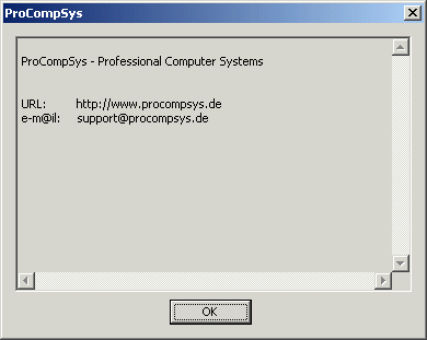 [Support Information] Line1=" " Line2="ProCompSys - Professional Computer Systems" Line3="" Line4="" Line5="URL: http://www.procompsys.de" Line6="e-m@il: support@procompsys.de"
