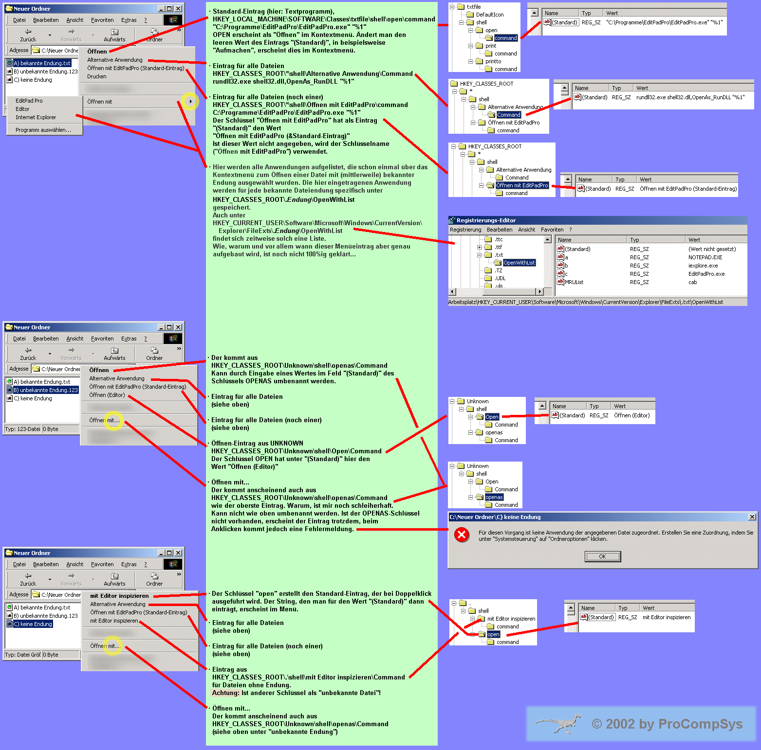 regedit) alles wunderbar einstellen und dazugibt es auch schon viele Hilfeseiten... Weniger bekannt ist jedoch die Tatsache, daß Dateien ohne Endung nicht unbedingt als unbekannte Dateiendung verarbeitet werden... Hierzu eine schöne Übersicht, die allerdings rein graphisch umgesetzt ist... in einem 160 kB großen GIF... ts-ts-ts... - UAP -
