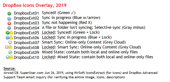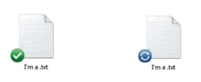 Bei Verwendung der Software "DropBox" erscheinen beispielsweise weiße Häkchen im grünen Kreis oder weiße Kreisel-Pfeile im blauen Kreis.