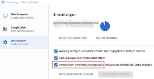 Deaktivieren läßt sich das Verhalten in den Einstellungen von Google Backup & Sync: