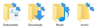 grüne Häkchen, blaue Pfeile usw. auf Datei- und Ordner-Symbolen