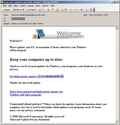 30.01.2008: Windows Update-Spam mit WGA-Drohung